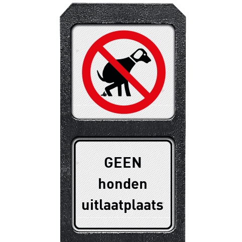 Bermpaal 1250x150x40mm met twee reflecterende bordjes 119x109mm met print van tekst / pictogrammen in reflectieklasse 3 (incl. anti-graffiti laminaat).